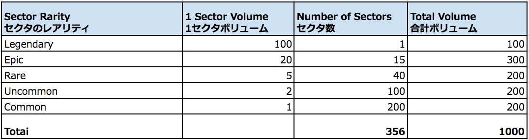 ・1ランドは最大1000ボリュームの大きさをもちます。ランドセクタのレアリティとセクタ数の構成は、各ランドにより異なります。