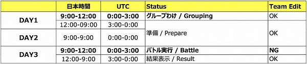 ナイト戦のDAY1/2/3は午前9:00 (UTC 0:00)起点としてスタートします。