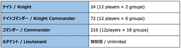 ランド内の階級は4段階あり、それぞれ定員数が定められています。
